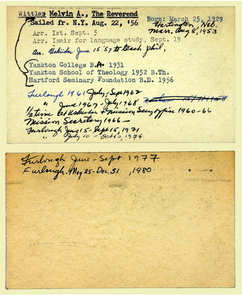 Personnel card for Melvin A. Wittler an employee of the American Board