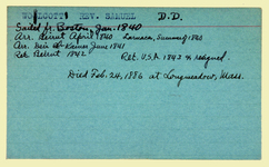 Personnel card for Samuel Wolcott an employee of the American Board