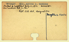 Personnel card for Edythe A. Galdride Woodley an employee of the American Board