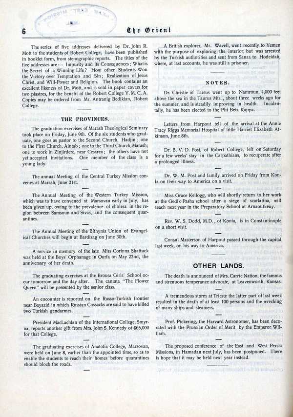 "The Orient: Volume II: Number 6," American Research Institute in Turkey, Istanbul Center Library, online in Digital Library for International Research Archive, Item #11815, http://www.dlir.org/archive/items/show/11815 (accessed April 30, 2026).