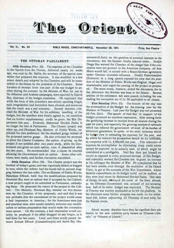 "The Orient: Volume II: Number 29," American Research Institute in Turkey, Istanbul Center Library, online in Digital Library for International Research Archive, Item #11838, http://www.dlir.org/archive/items/show/11838 (accessed April 30, 2026).
