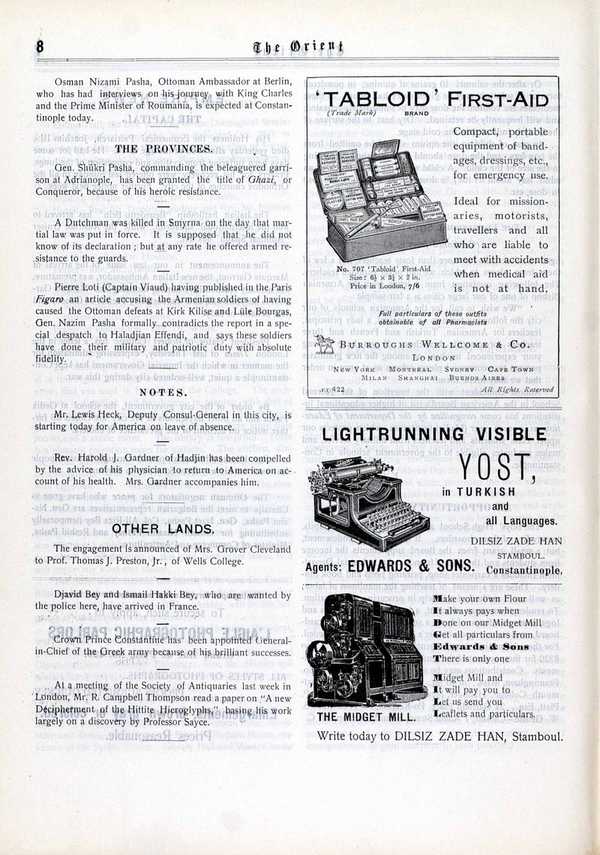 English-language weekly newspaper published in Istanbul from 1910 to 1922, with reporting on contemporary events, politics, and society.