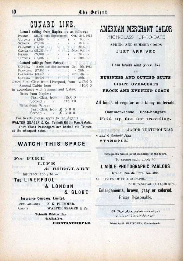 English-language weekly newspaper published in Istanbul from 1910 to 1922, with reporting on contemporary events, politics, and society.