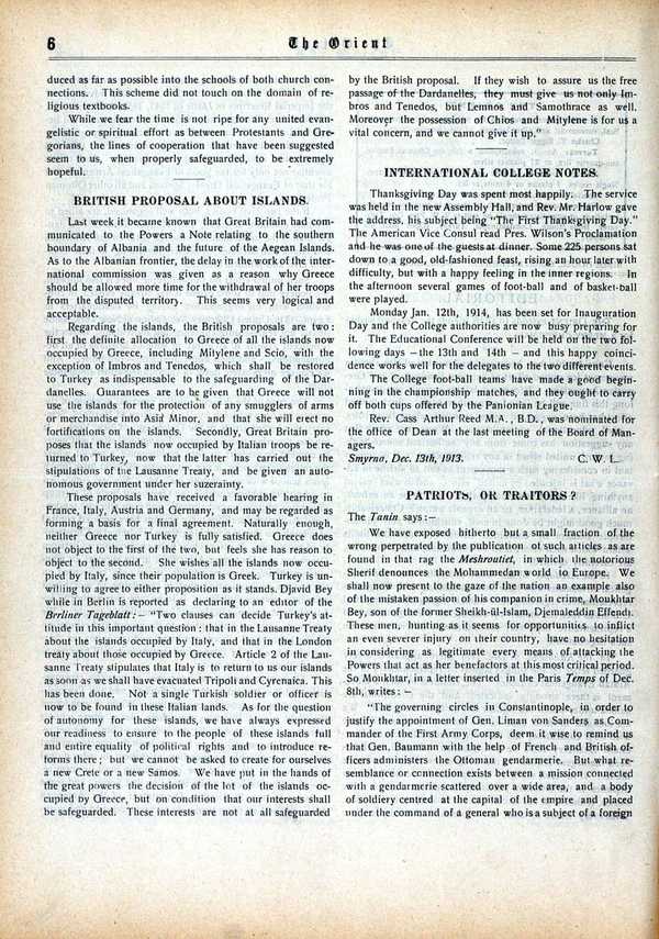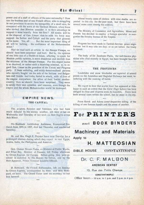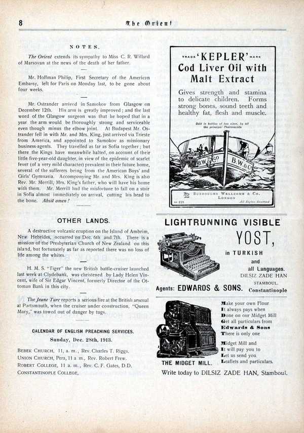 English-language weekly newspaper published in Istanbul from 1910 to 1922, with reporting on contemporary events, politics, and society.