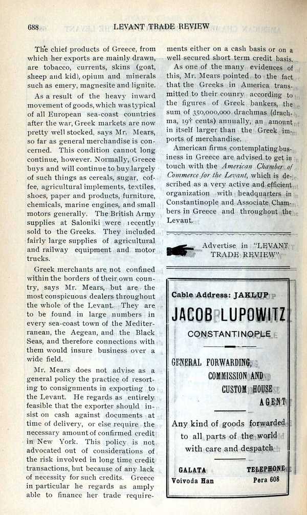 "Levant Trade Review: Volume 8: Number 9," American Research Institute in Turkey, Istanbul Center Library, online in Digital Library for International Research Archive, Item #12464, http://www.dlir.org/archive/items/show/12464 (accessed April 30, 2026).
