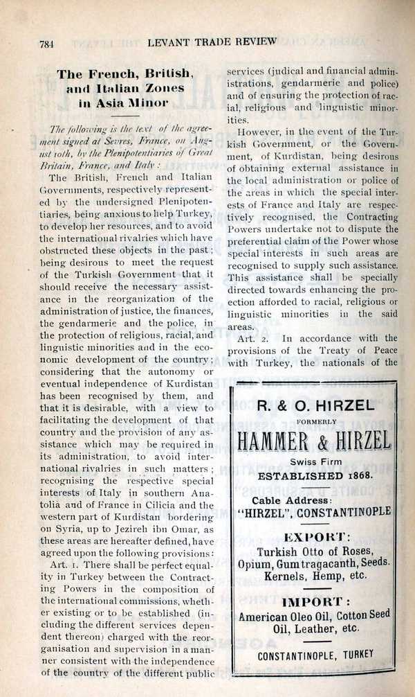 "Levant Trade Review: Volume 8: Number 10," American Research Institute in Turkey, Istanbul Center Library, online in Digital Library for International Research Archive, Item #12465, http://www.dlir.org/archive/items/show/12465 (accessed April 30, 2026).