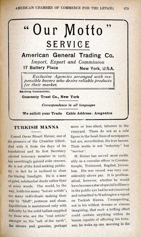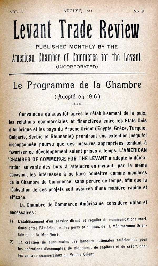"Levant Trade Review: Volume 9: Number 8," American Research Institute in Turkey, Istanbul Center Library, online in Digital Library for International Research Archive, Item #12475, http://www.dlir.org/archive/items/show/12475 (accessed April 30, 2026).