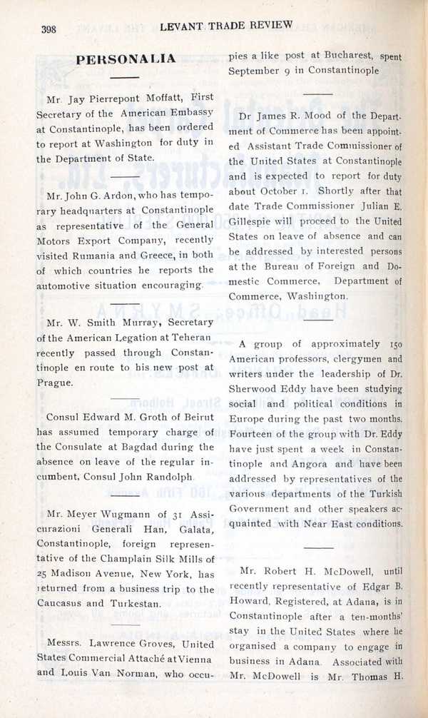 "Levant Trade Review: Volume 13: Number 9," American Research Institute in Turkey, Istanbul Center Library, online in Digital Library for International Research Archive, Item #12695, http://www.dlir.org/archive/items/show/12695 (accessed April 30, 2026).