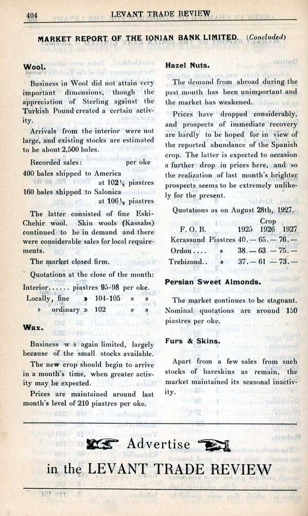 "Levant Trade Review: Volume 15: Number 9," American Research Institute in Turkey, Istanbul Center Library, online in Digital Library for International Research Archive, Item #12719, http://www.dlir.org/archive/items/show/12719 (accessed April 30, 2026).