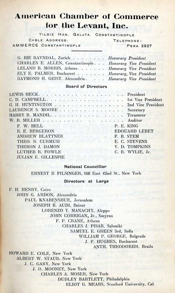 English-language quarterly journal published in Istanbul from 1911 to 1931, with reporting on the economy, trade, and financial affairs of Turkey and surrounding areas.