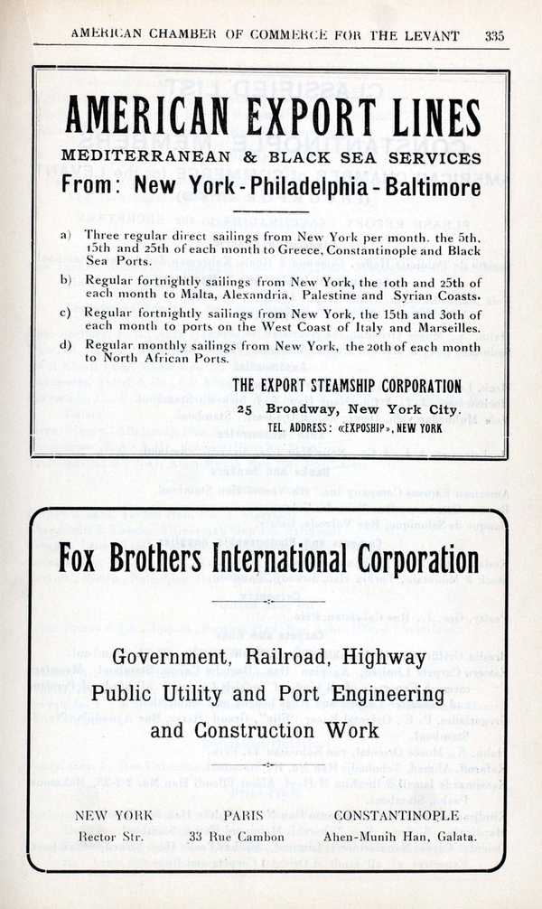 "Levant Trade Review: Volume 18: Number 8," American Research Institute in Turkey, Istanbul Center Library, online in Digital Library for International Research Archive, Item #12753, http://www.dlir.org/archive/items/show/12753 (accessed April 30, 2026).