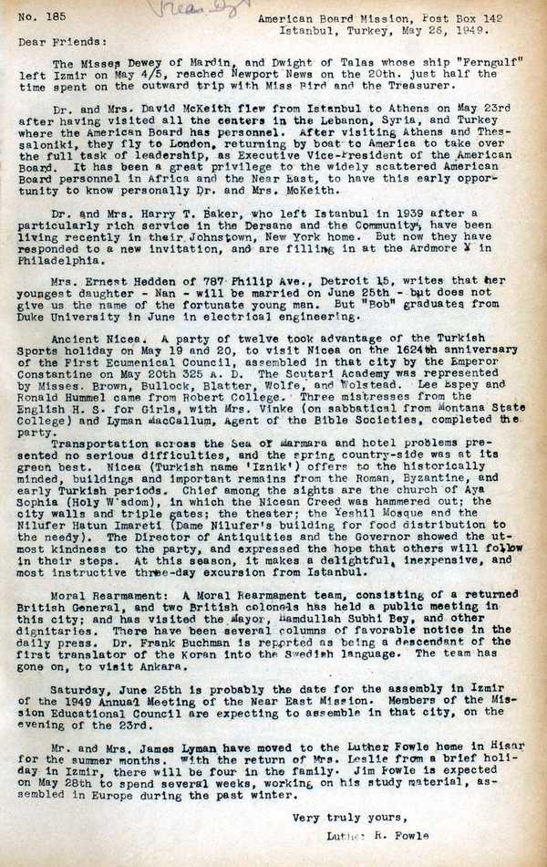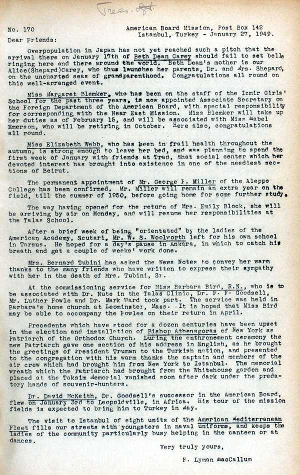 English-language weekly bulletin of the American Board produced in Istanbul from 1924 to c.1990, with notes on current local news and events in the Mission.