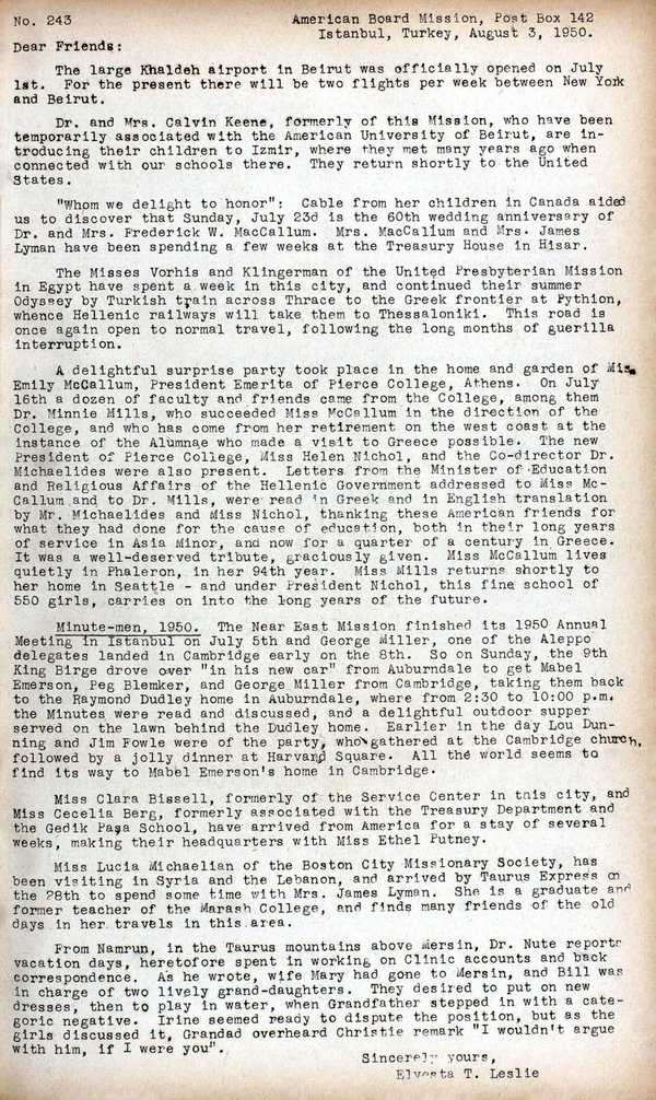 English-language weekly bulletin of the American Board produced in Istanbul from 1924 to c.1990, with notes on current local news and events in the Mission.