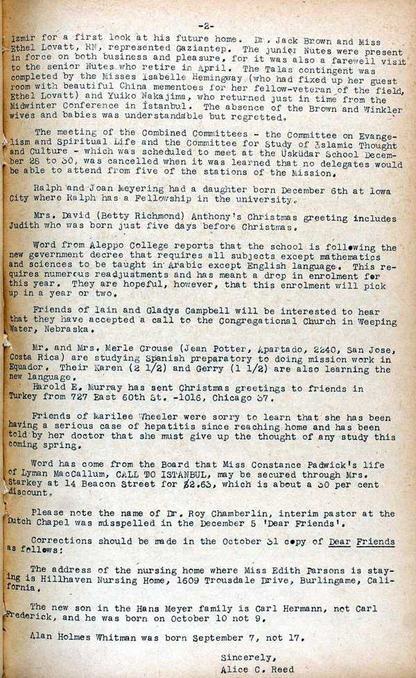 English-language weekly bulletin of the American Board produced in Istanbul from 1924 to c.1990, with notes on current local news and events in the Mission.
