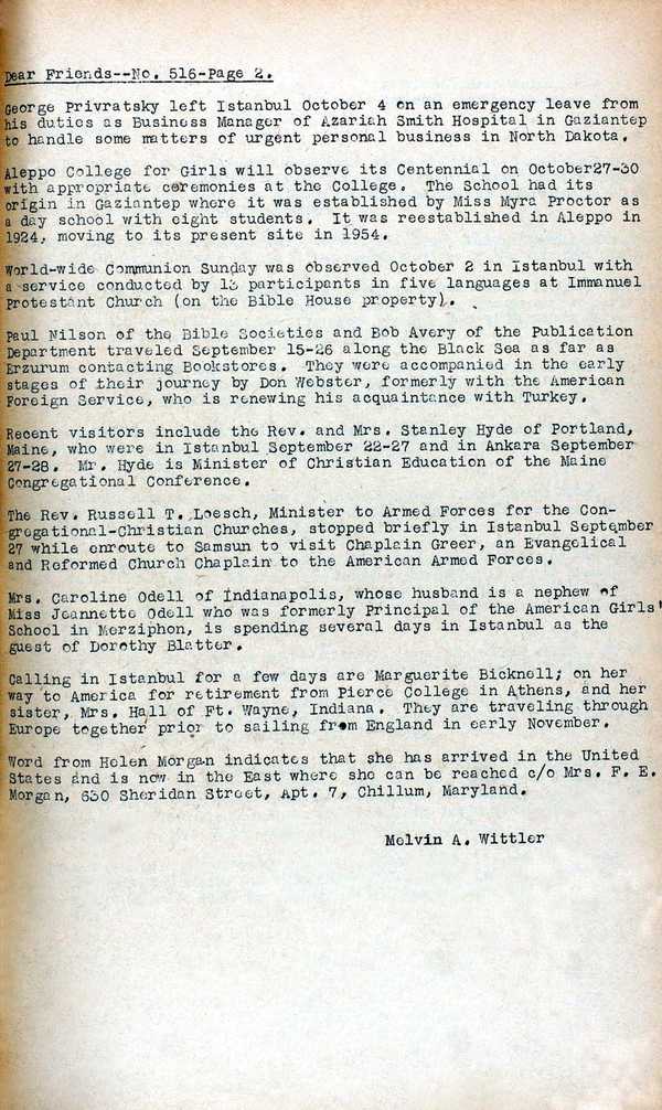 English-language weekly bulletin of the American Board produced in Istanbul from 1924 to c.1990, with notes on current local news and events in the Mission.