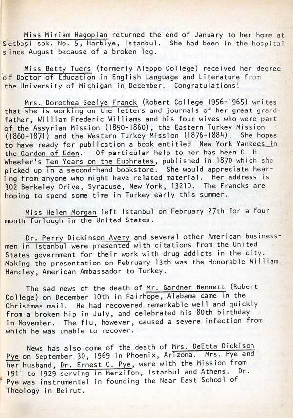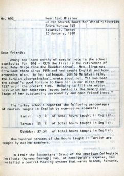 English-language weekly bulletin of the American Board produced in Istanbul from 1924 to c.1990, with notes on current local news and events in the Mission.