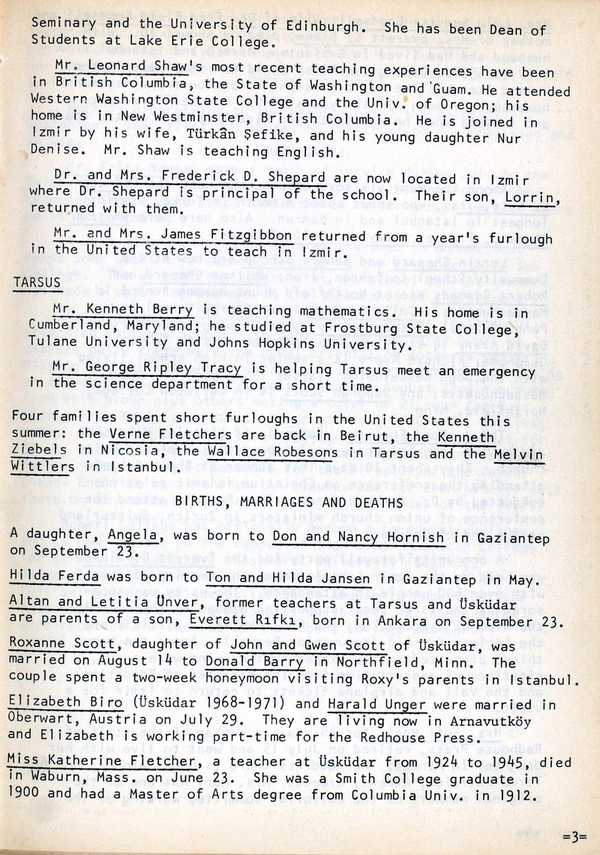 English-language weekly bulletin of the American Board produced in Istanbul from 1924 to c.1990, with notes on current local news and events in the Mission.