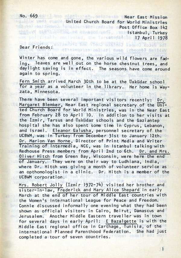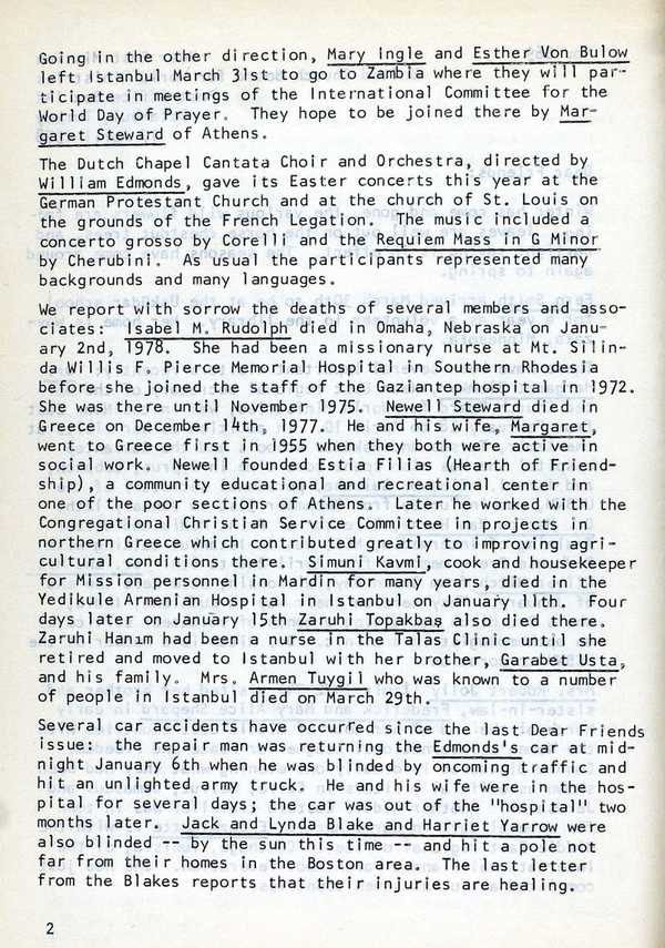 English-language weekly bulletin of the American Board produced in Istanbul from 1924 to c.1990, with notes on current local news and events in the Mission.