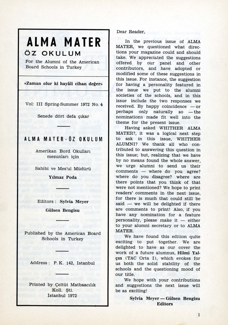 "Alma Mater Vol.III No.4," American Research Institute in Turkey, Istanbul Center Library, online in Digital Library for International Research Archive, Item #17508, http://www.dlir.org/archive/items/show/17508 (accessed April 30, 2026).