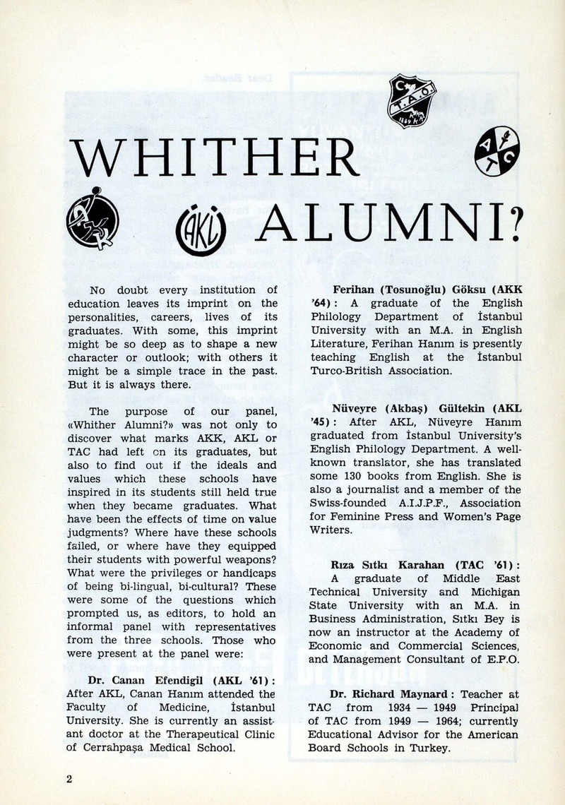 Bulletin for the Alumni of the American Board Schools in Turkey from 1965-1976