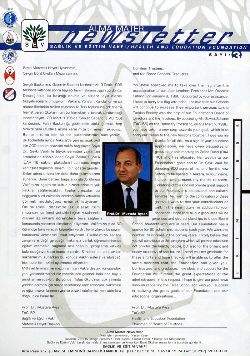 Bulletin for the Alumni of the American Board Schools in Turkey from 1995-2002